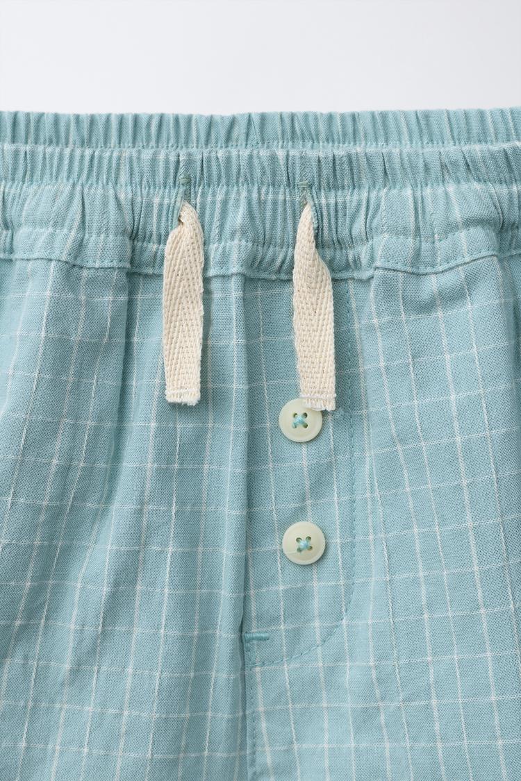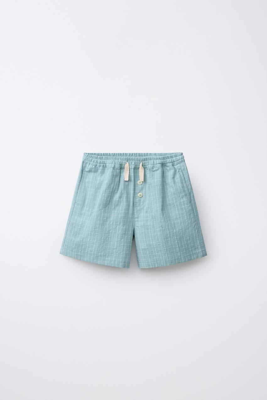 ZARA ШОРТЫ В КЛЕТКУ НА ПУГОВИЦАХ, ГОЛУБОЙ