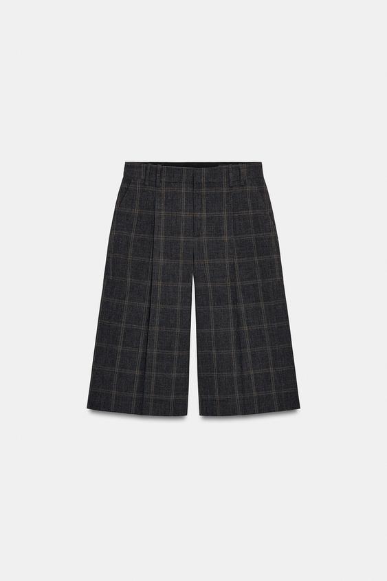 ZARA ШОРТЫ В КЛЕТКУ — ZW COLLECTION, СЕРЫЙ МЕЛАНЖ
