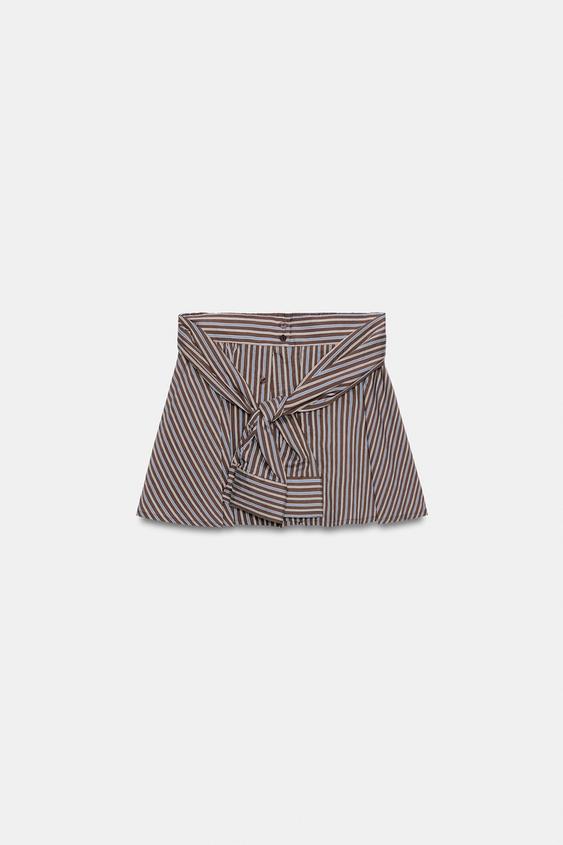ZARA ШОРТЫ В ПОЛОСКУ С ЗАВЯЗКАМИ, КОРИЧНЕВЫЙ