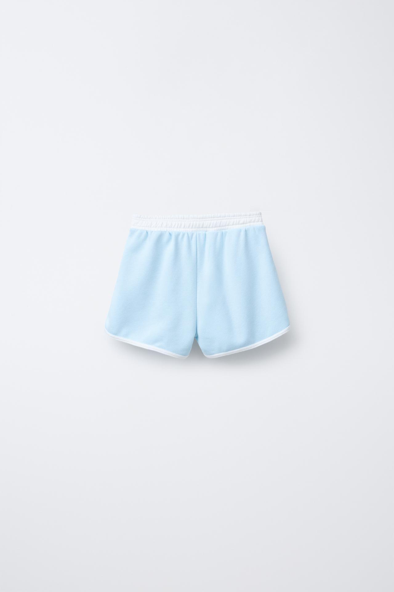 ZARA ШОРТЫ В СТИЛЕ ПРЕППИ ИЗ МЯГКОЙ ТКАНИ, ГОЛУБОЙ