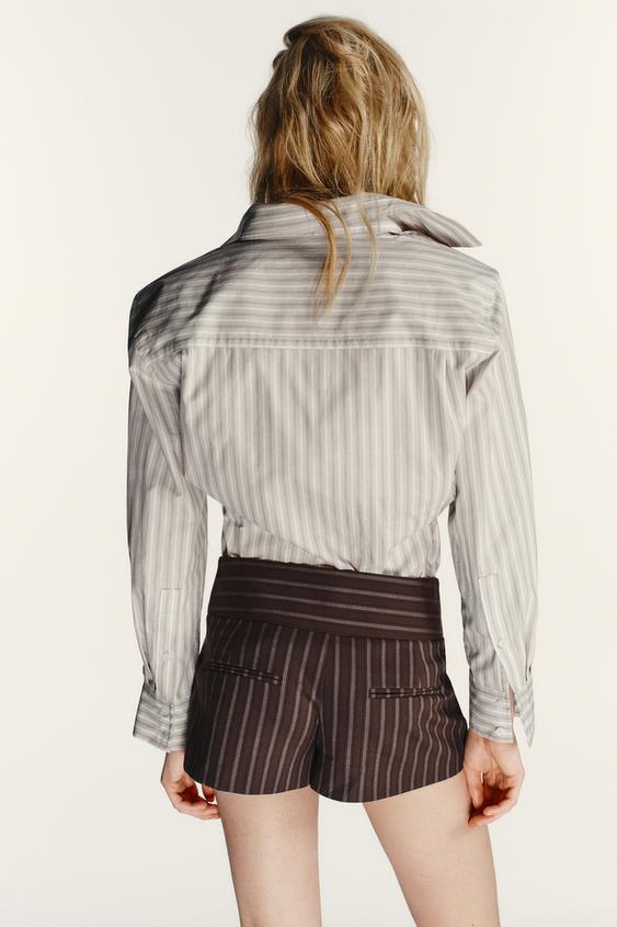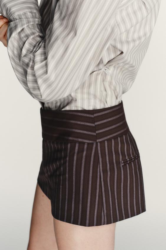 ZARA ШОРТЫ В ТОНКУЮ ПОЛОСКУ С ПОЯСОМ, ТЕМНО-СЕРЫЙ