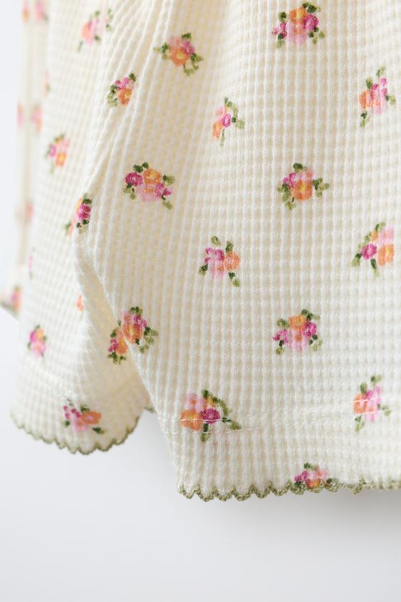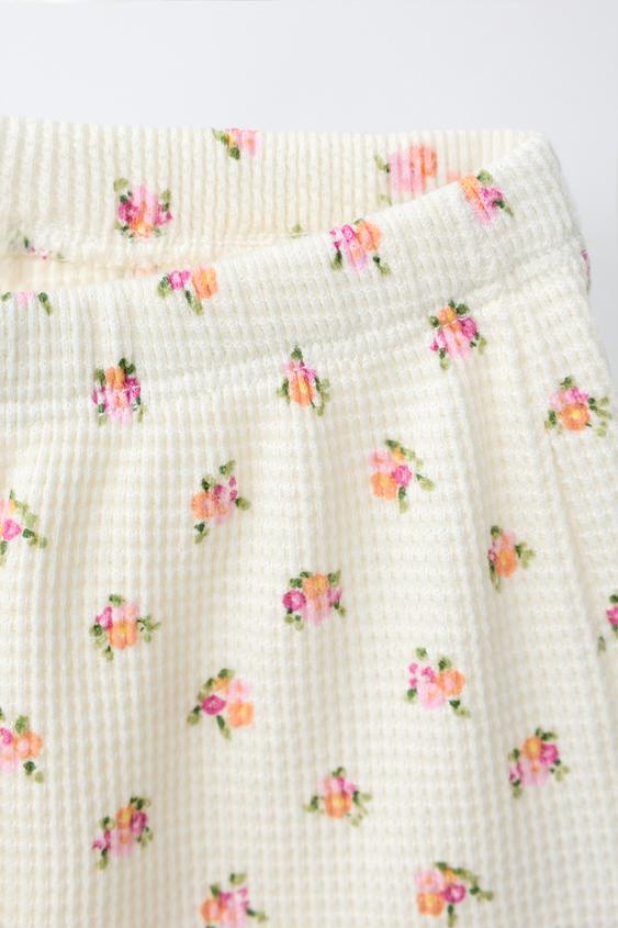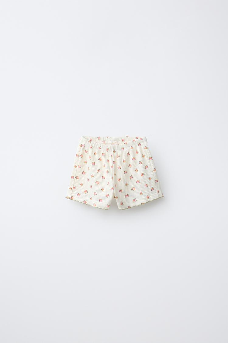 ZARA ШОРТЫ ВАФЕЛЬНЫЕ С ЦВЕТОЧНЫМ ПРИНТОМ, ЭКРЮ