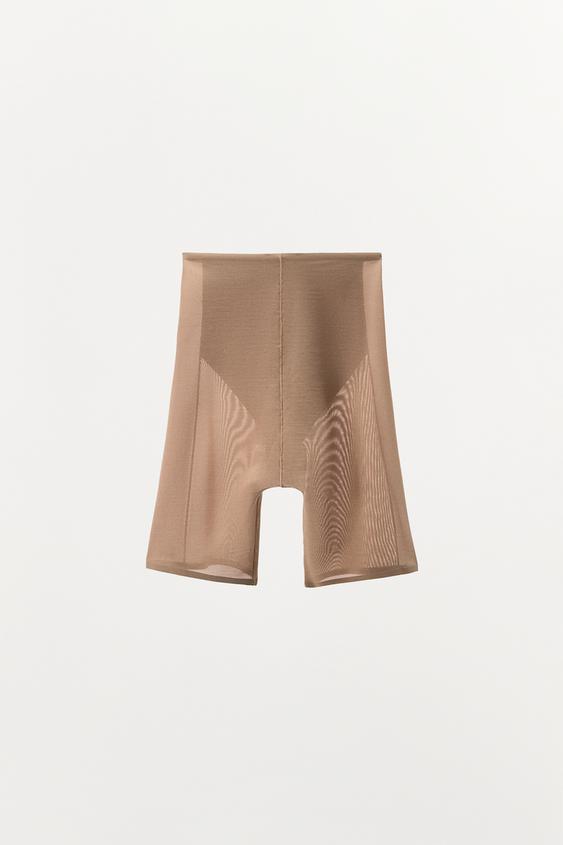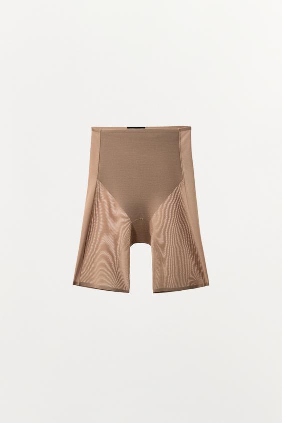 ZARA ШОРТЫ-ВЕЛОСИПЕДКИ ИЗ ПОЛИАМИДА С СЕТЧАТЫМИ ВСТАВКАМИ, БЕЖЕВЫЙ