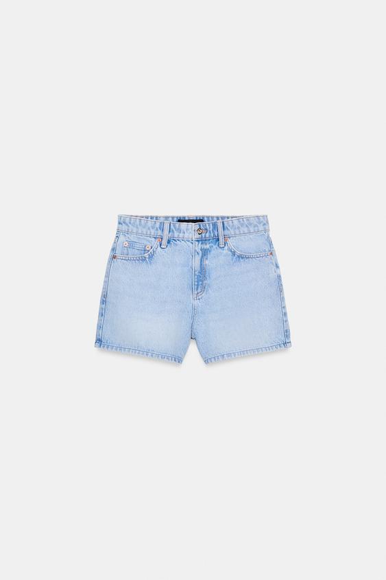 ZARA ШОРТЫ Z1975 MOM FIT СО СРЕДНЕЙ ПОСАДКОЙ, ГОЛУБОЙ