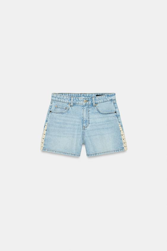 ZARA ШОРТЫ Z1975 С ВЯЗАНЫМИ ДЕТАЛЯМИ, ВЫЦВЕТШИЙ СИНИЙ