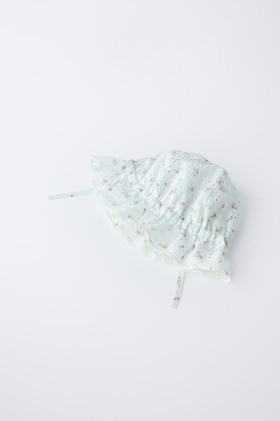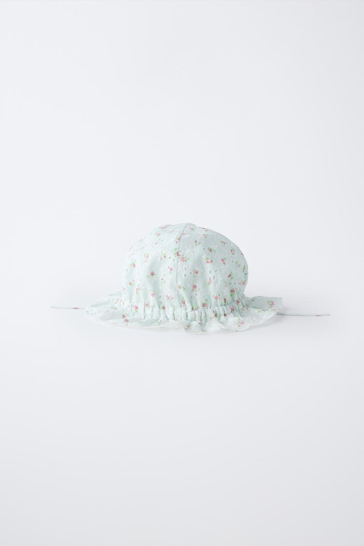 ZARA ШВЕЙЦАРСКАЯ ПАНАМА С ВЫШИВКОЙ И ЦВЕТОЧНЫМ ПРИНТОМ, ЦВЕТ МОРСКОЙ ВОЛНЫ
