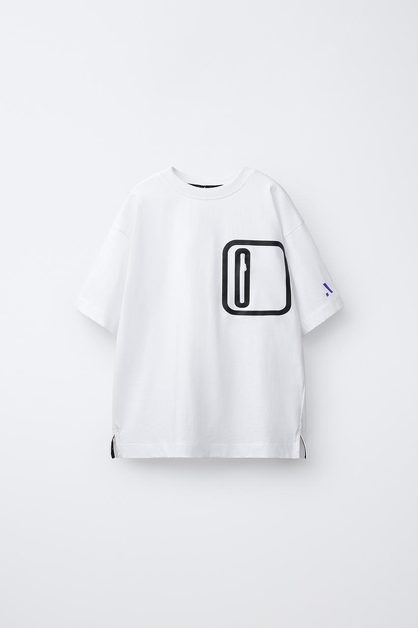 ZARA СПОРТИВНАЯ ФУТБОЛКА С КАРМАНОМ, БЕЛЫЙ