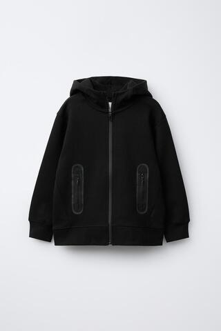 ZARA СПОРТИВНАЯ ТОЛСТОВКА НА МОЛНИИ ИЗ ТКАНИ ИНТЕРЛОК, ЧЕРНЫЙ