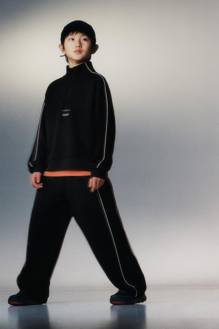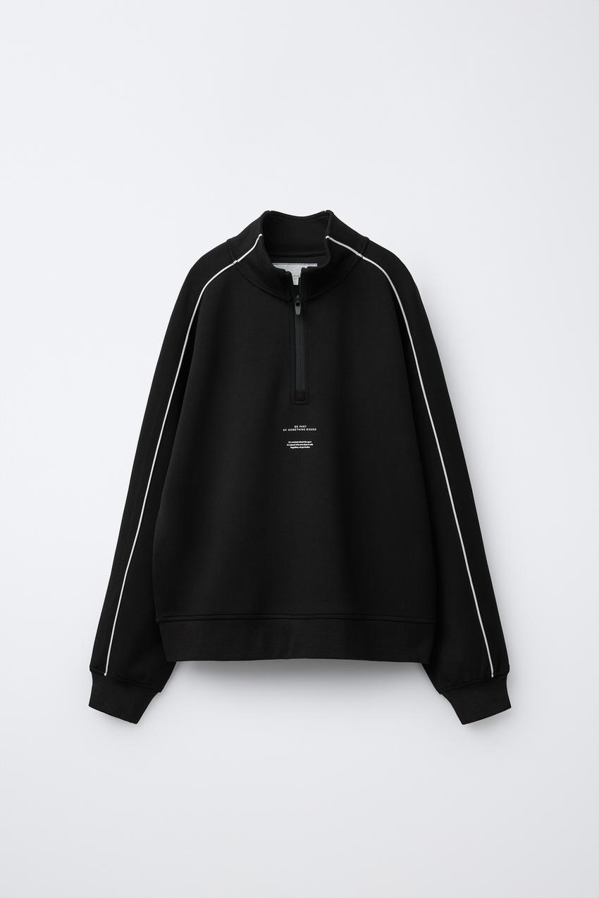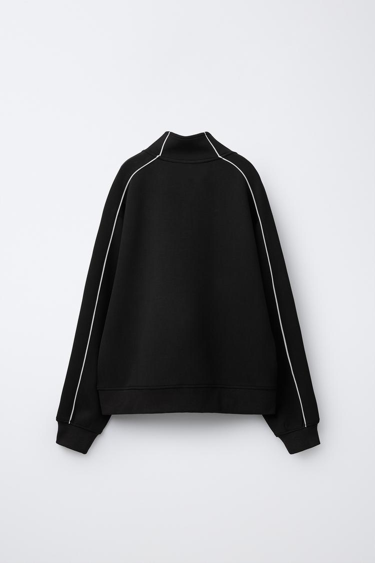 ZARA СПОРТИВНАЯ ТОЛСТОВКА С КОНТРАСТНЫМИ КАНТАМИ, ЧЕРНЫЙ