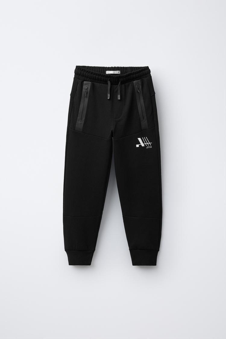 ZARA СПОРТИВНЫЕ БРЮКИ-ДЖОГГЕРЫ ИЗ INTERLOCK, ЧЕРНЫЙ
