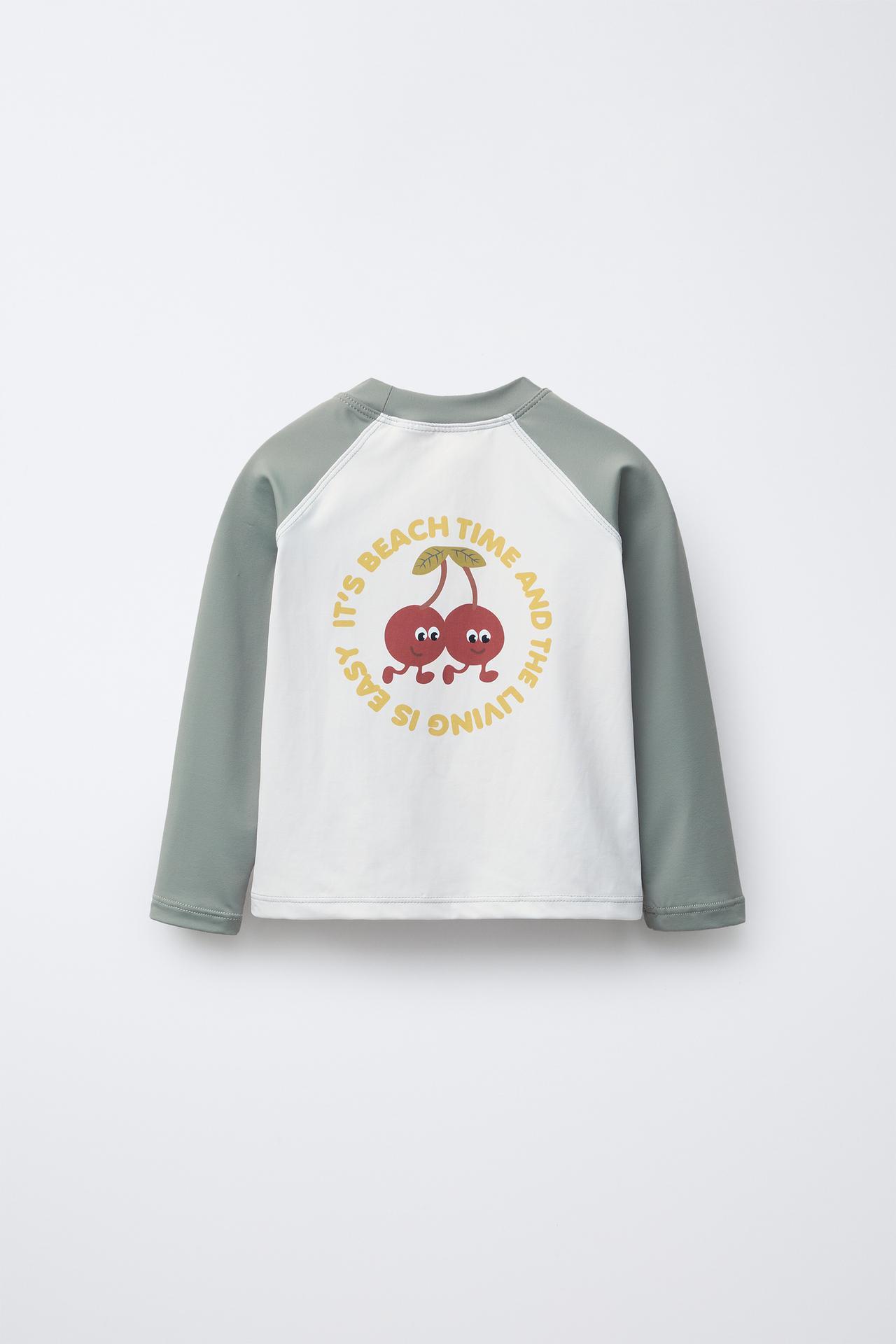 ZARA СПОРТИВНЫЙ ТОП С ПРИНТОМ «ВИШНЯ», ЭКРЮ