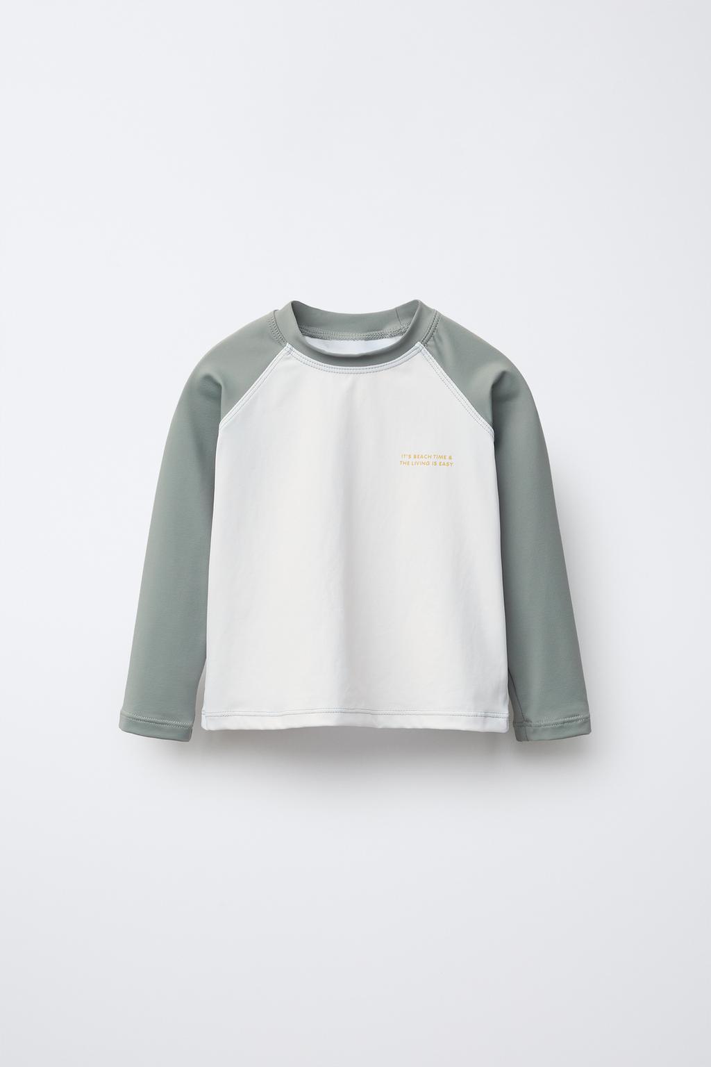Спортивный топ с круглым вырезом и длинными рукавами контрастного цвета. Надпись на груди и вишня сзади.