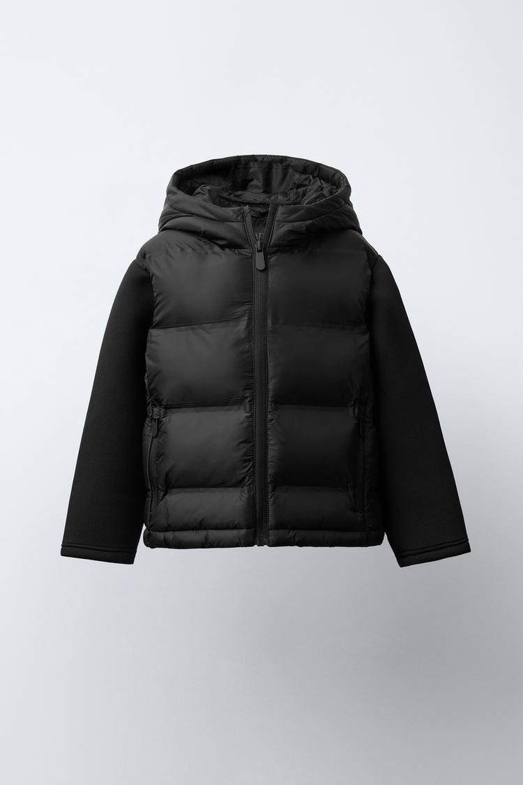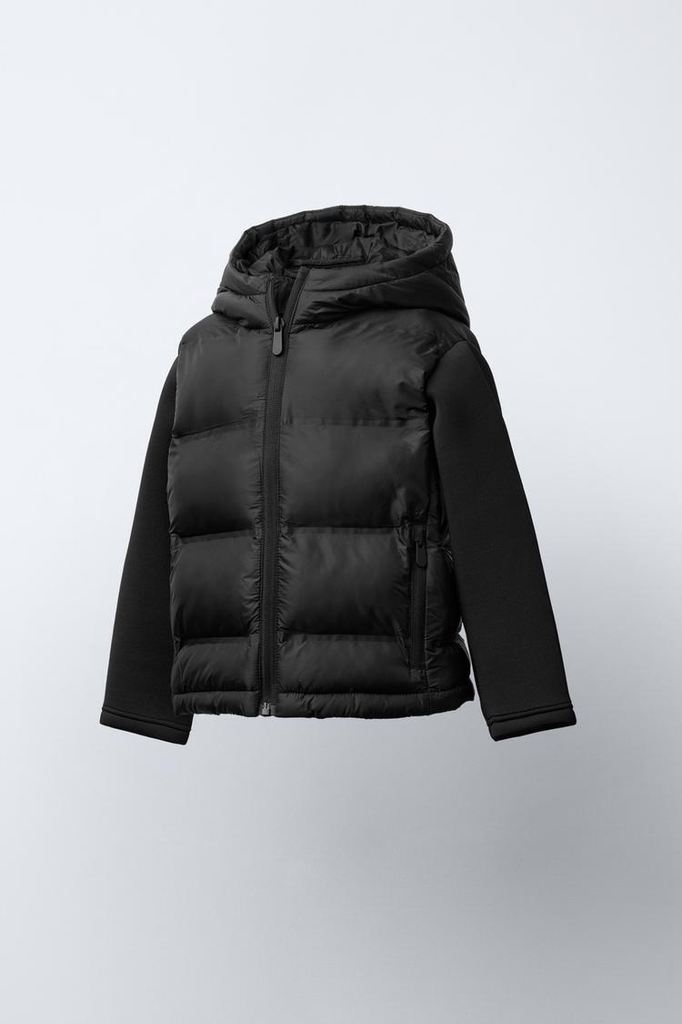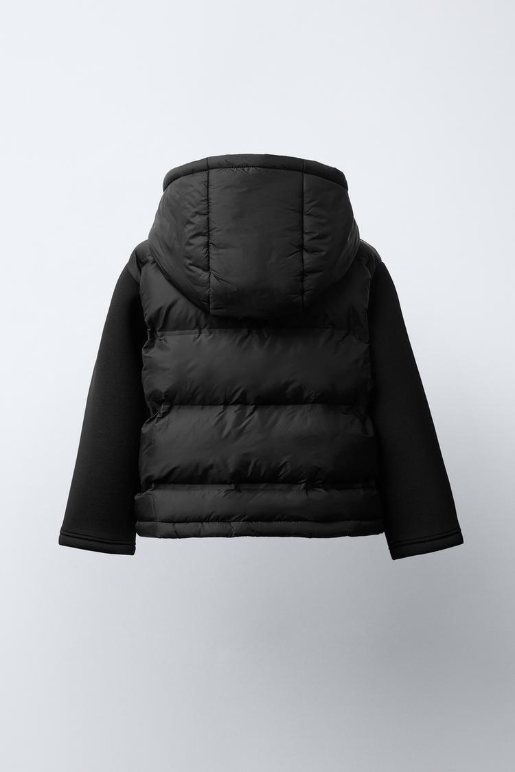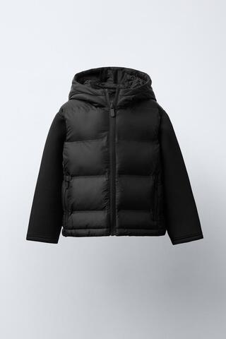 ZARA СТЕГАНАЯ КОМБИНИРОВАННАЯ КУРТКА, ЧЕРНЫЙ