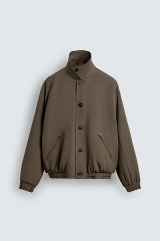 ZARA СТЕГАНАЯ КУРТКА ИЗ 100% ШЕРСТИ, СЕРО-КОРИЧНЕВЫЙ