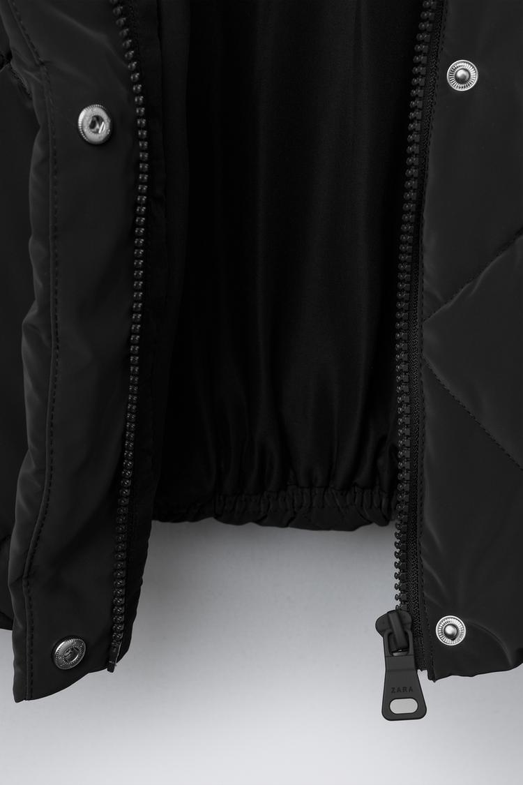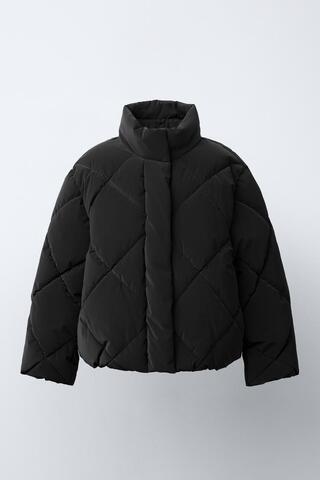 ZARA СТЕГАНАЯ КУРТКА ИЗ ПРОРЕЗИНЕННОЙ ТКАНИ, ЧЕРНЫЙ
