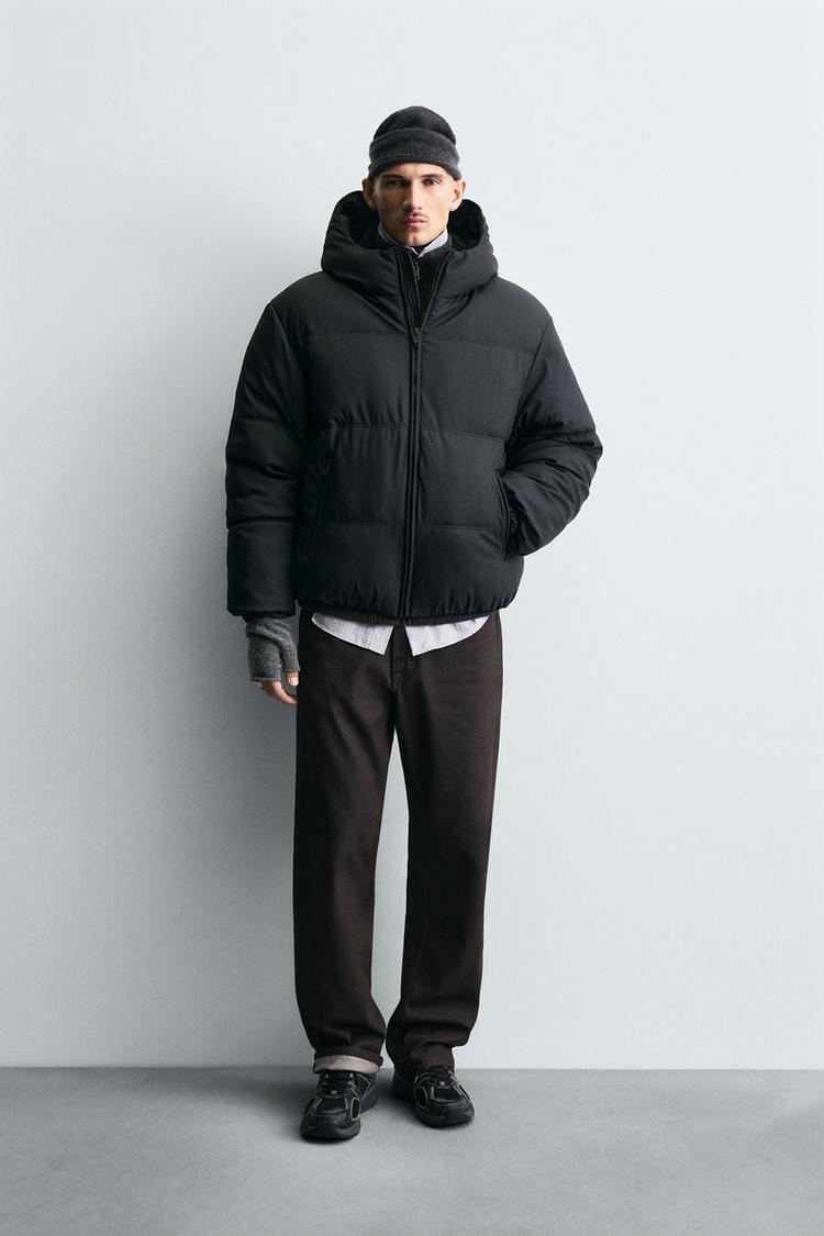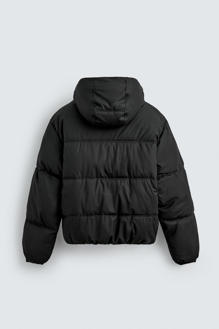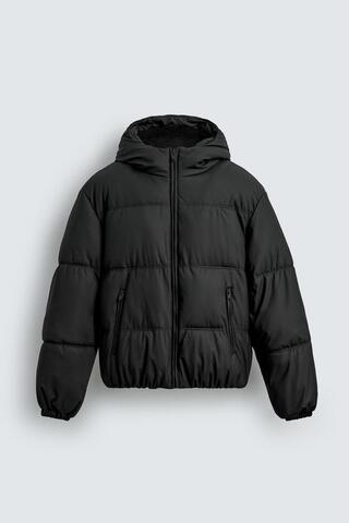 ZARA СТЕГАНАЯ КУРТКА ИЗ ПРОРЕЗИНЕННОЙ ТКАНИ С КОМБИНИРОВАННЫМИ ДЕТАЛЯМИ, ЧЕРНЫЙ