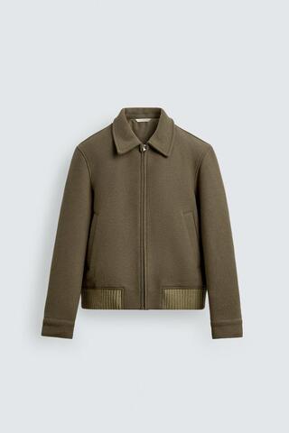 ZARA СТЕГАНАЯ КУРТКА ИЗ ШЕРСТЯНОЙ ТКАНИ, ЗЕЛЕНОВАТЫЙ
