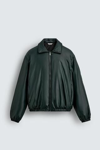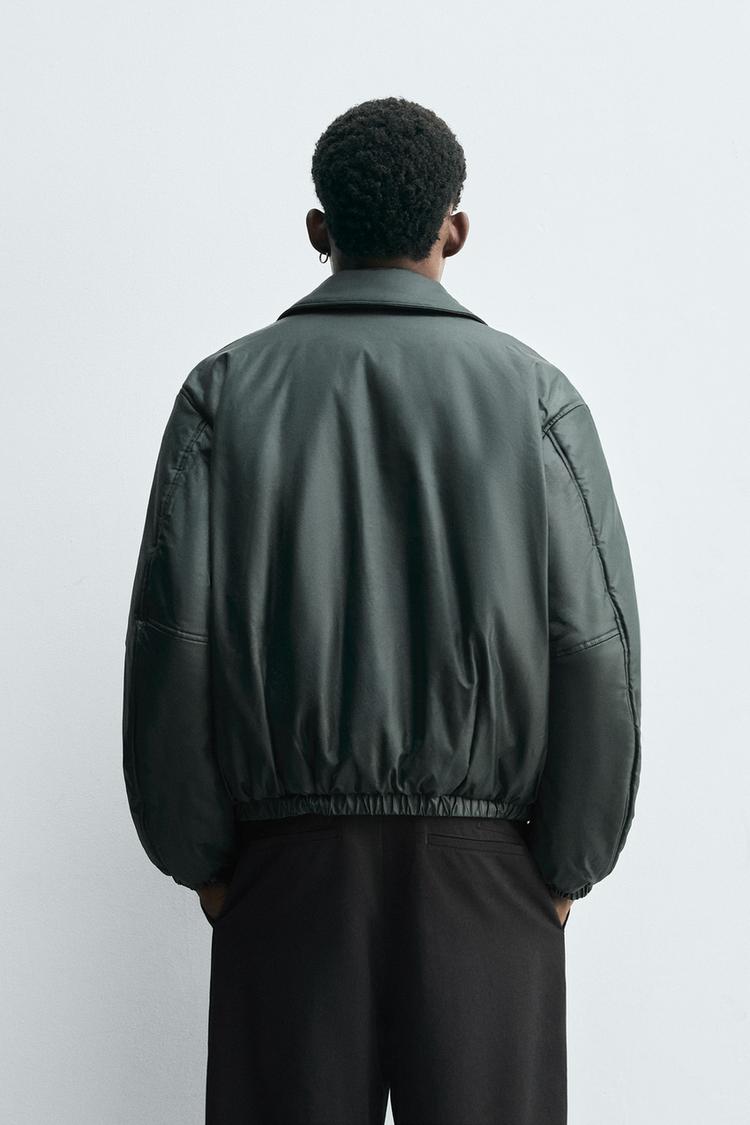 ZARA СТЕГАНАЯ КУРТКА ИЗ ВЫСОКОТЕХНОЛОГИЧНОЙ ТКАНИ, ТЕМНО-ЗЕЛЕНЫЙ