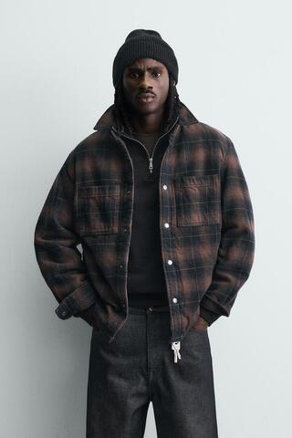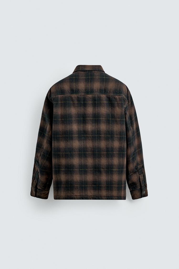 ZARA СТЕГАНАЯ КУРТКА-РУБАШКА В КЛЕТКУ, КОРИЧНЕВЫЙ