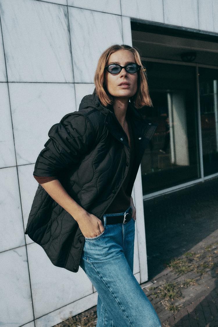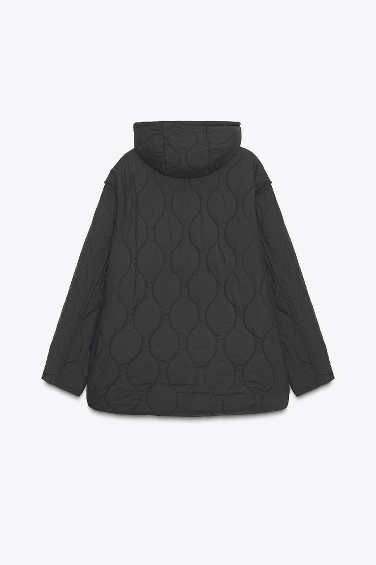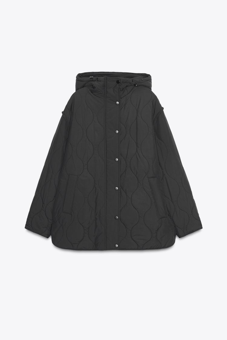 ZARA СТЕГАНАЯ КУРТКА С КАПЮШОНОМ, ЧЕРНЫЙ