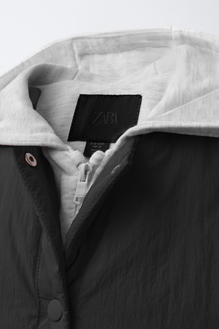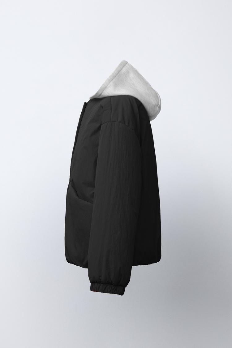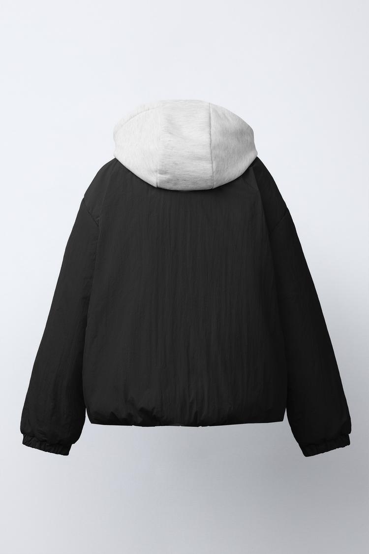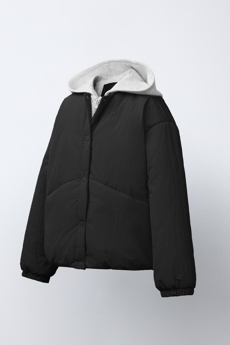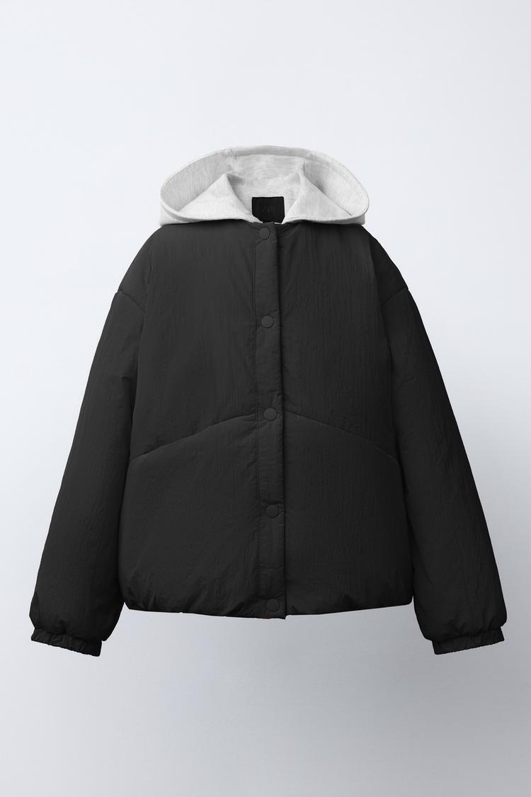 ZARA СТЕГАНАЯ КУРТКА С КАПЮШОНОМ И ФЛИСОВОЙ ПОДКЛАДКОЙ, ЧЕРНЫЙ