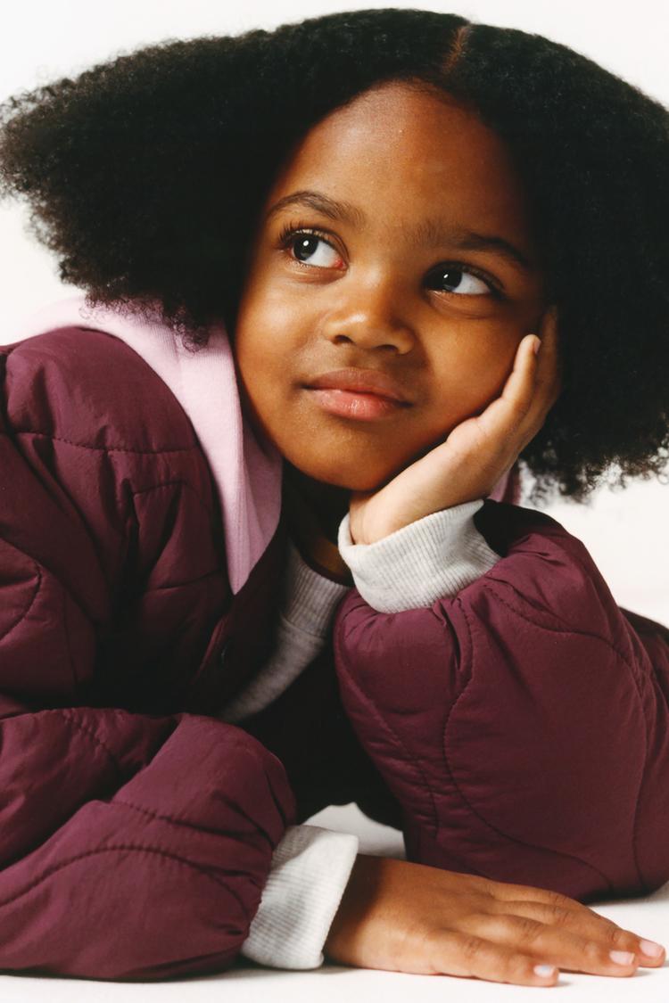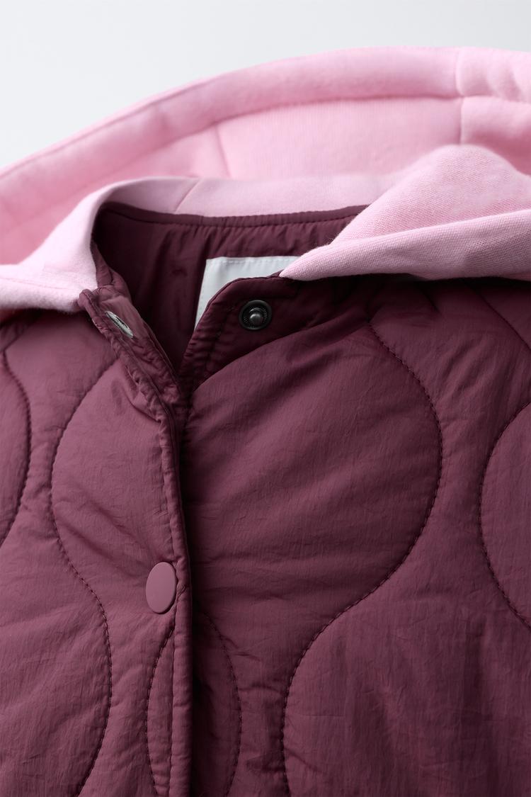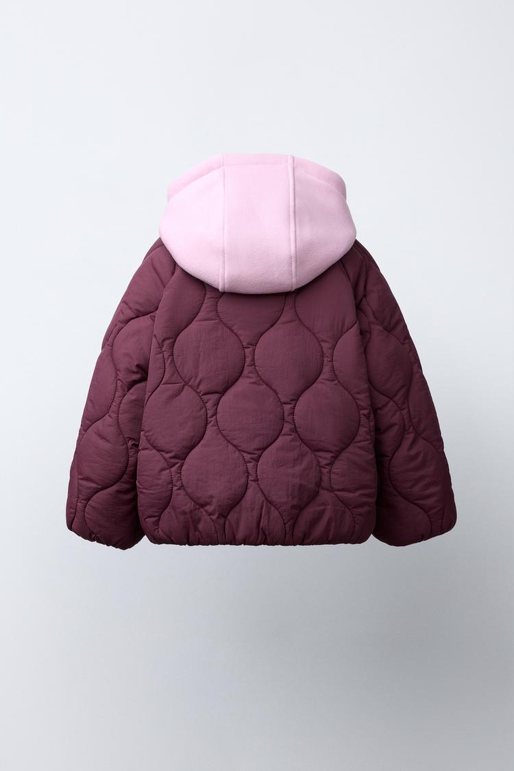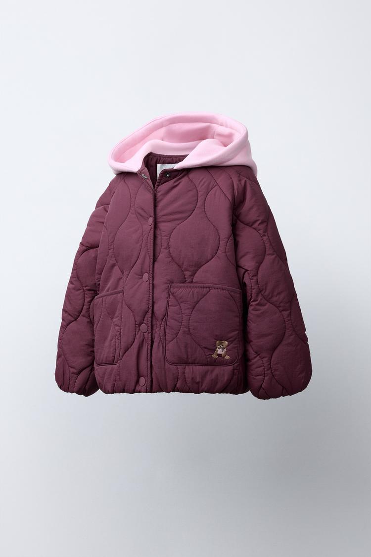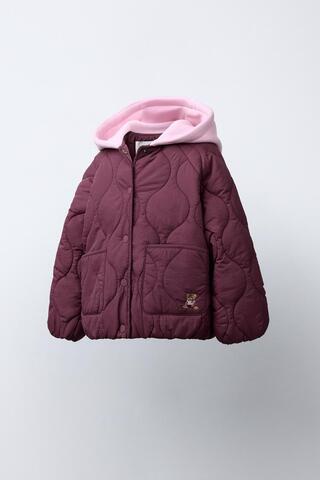 ZARA СТЕГАНАЯ КУРТКА С КАПЮШОНОМ И ВЫШИВКОЙ В ВИДЕ МЕДВЕЖОНКА, БУРГУНДИ