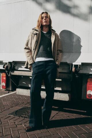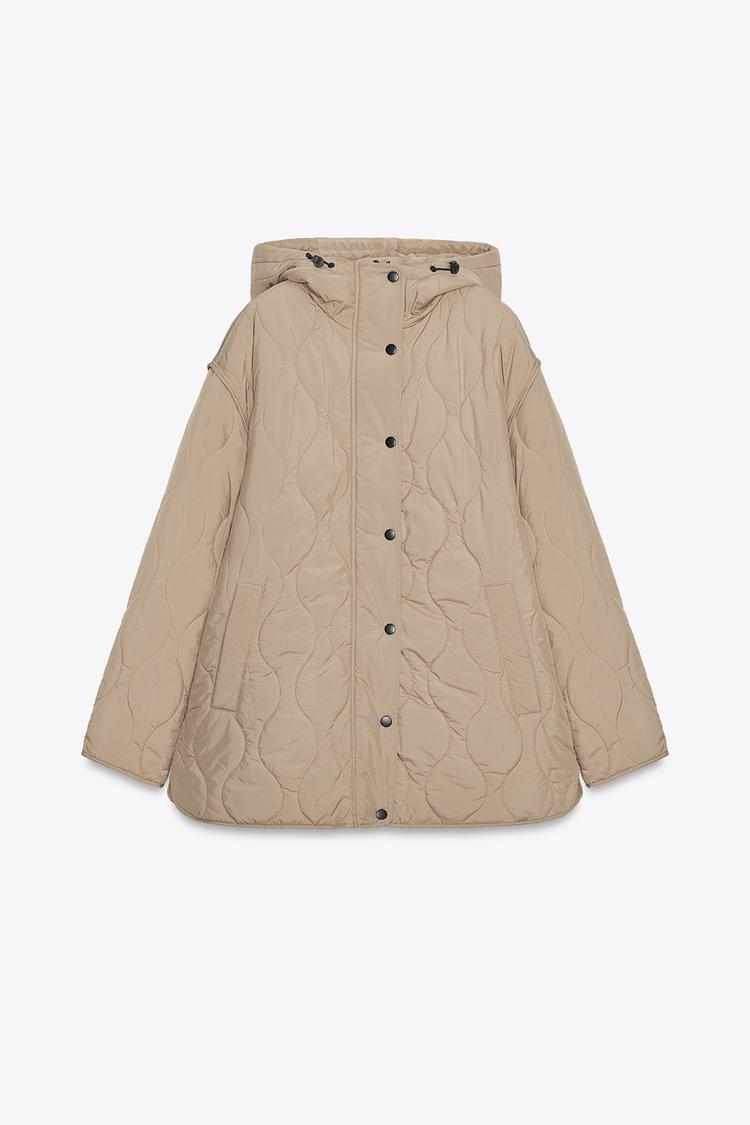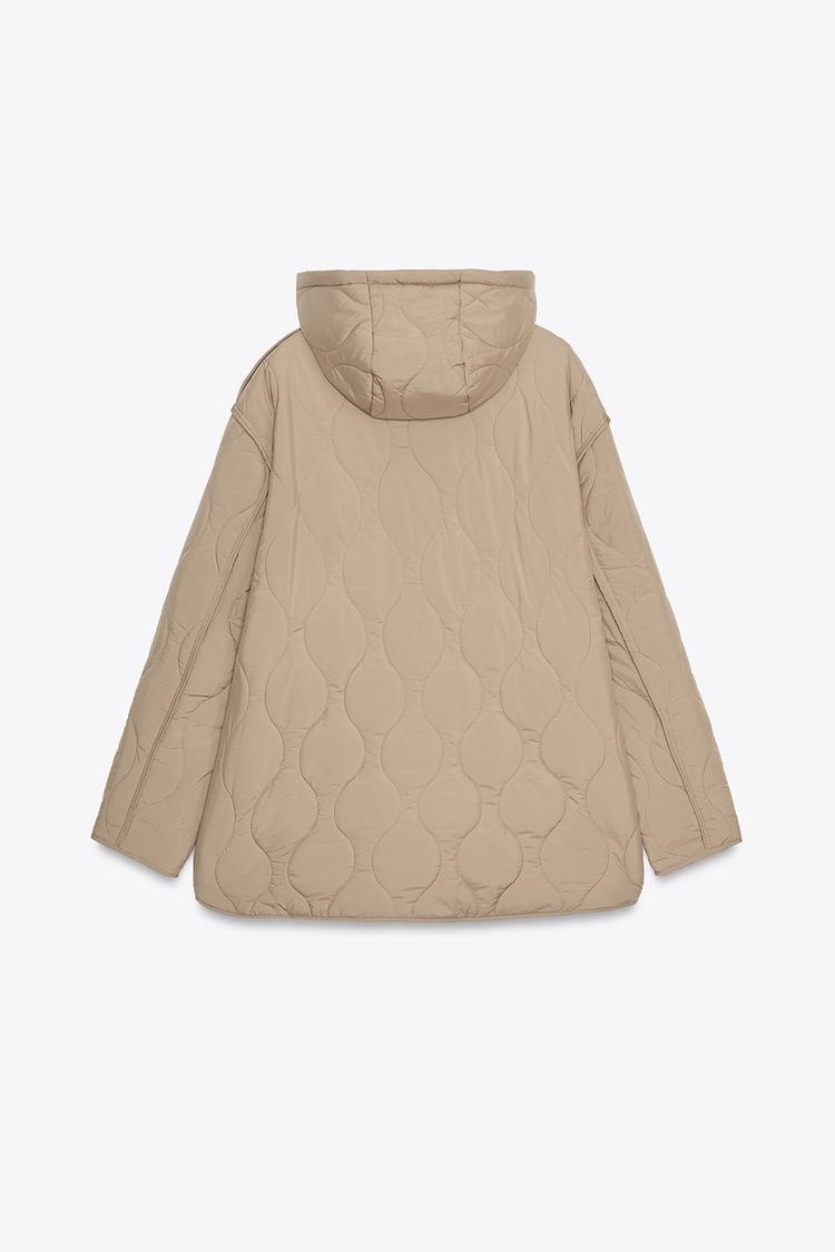 ZARA СТЕГАНАЯ КУРТКА С КАПЮШОНОМ, ТАБАЧНЫЙ