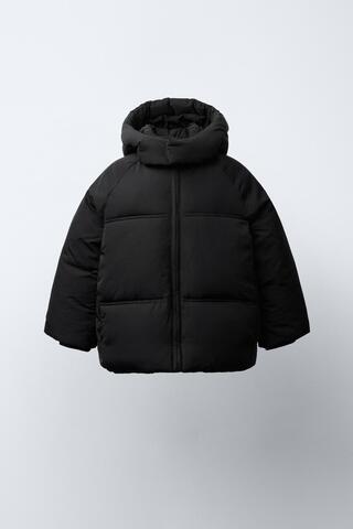 ZARA СТЕГАНАЯ КУРТКА С КАПЮШОНОМ WATER REPELLENT, ЧЕРНЫЙ