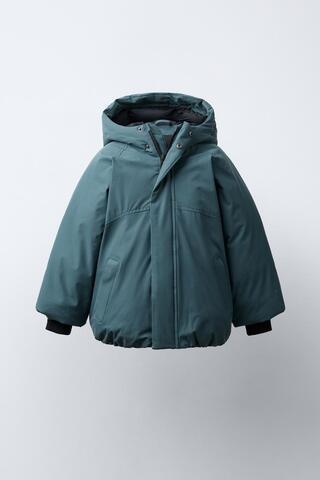 ZARA СТЕГАНАЯ КУРТКА С КАПЮШОНОМ WATER REPELLENT, НЕФТЯНОЙ