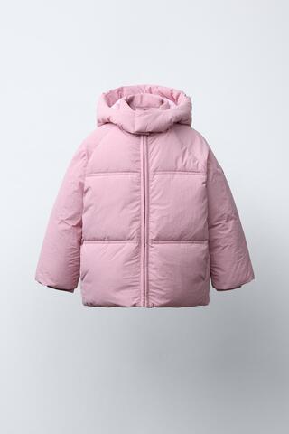 ZARA СТЕГАНАЯ КУРТКА С КАПЮШОНОМ WATER REPELLENT, РОЗОВЫЙ