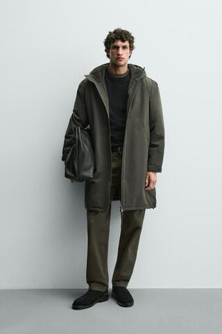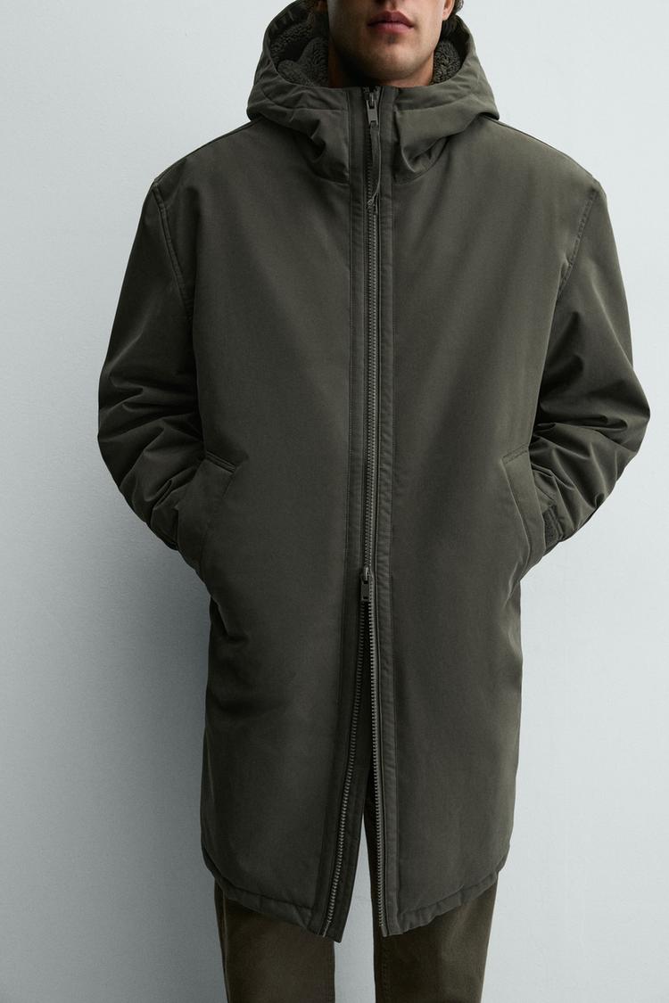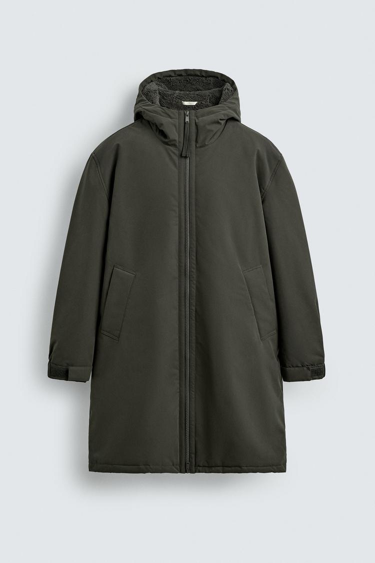 ZARA СТЕГАНАЯ КУРТКА С КОМБИНИРОВАННОЙ ОТДЕЛКОЙ, ХАКИ