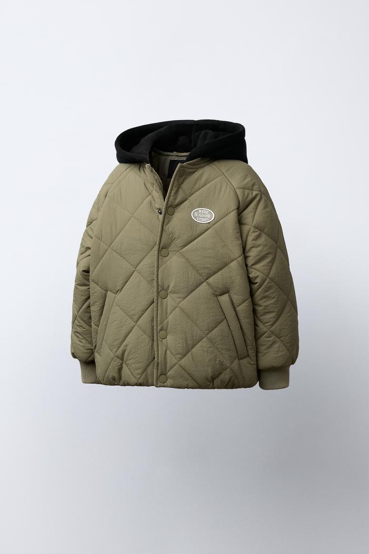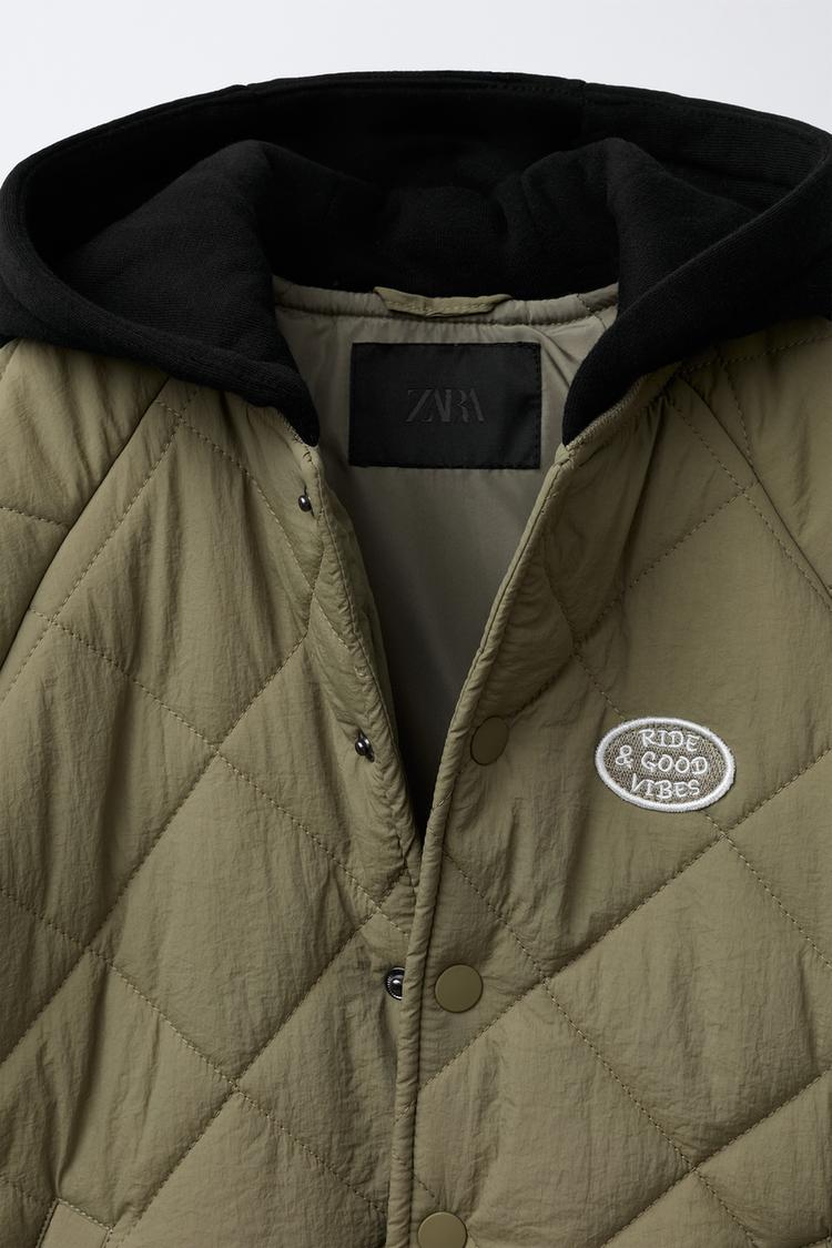ZARA СТЕГАНАЯ КУРТКА С КОМБИНИРОВАННЫМ КАПЮШОНОМ, ХАКИ