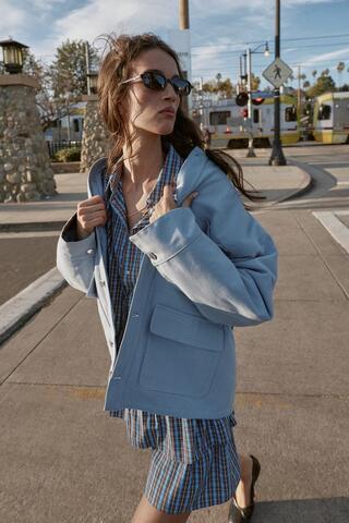 ZARA СТЕГАНАЯ КУРТКА С КОМБИНИРОВАННЫМ ВОРОТНИКОМ, НЕБЕСНО-ГОЛУБОЙ