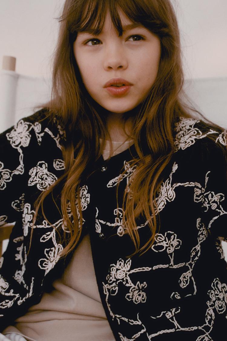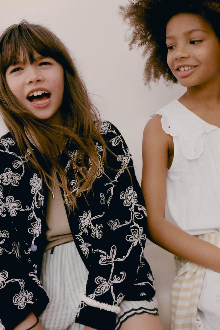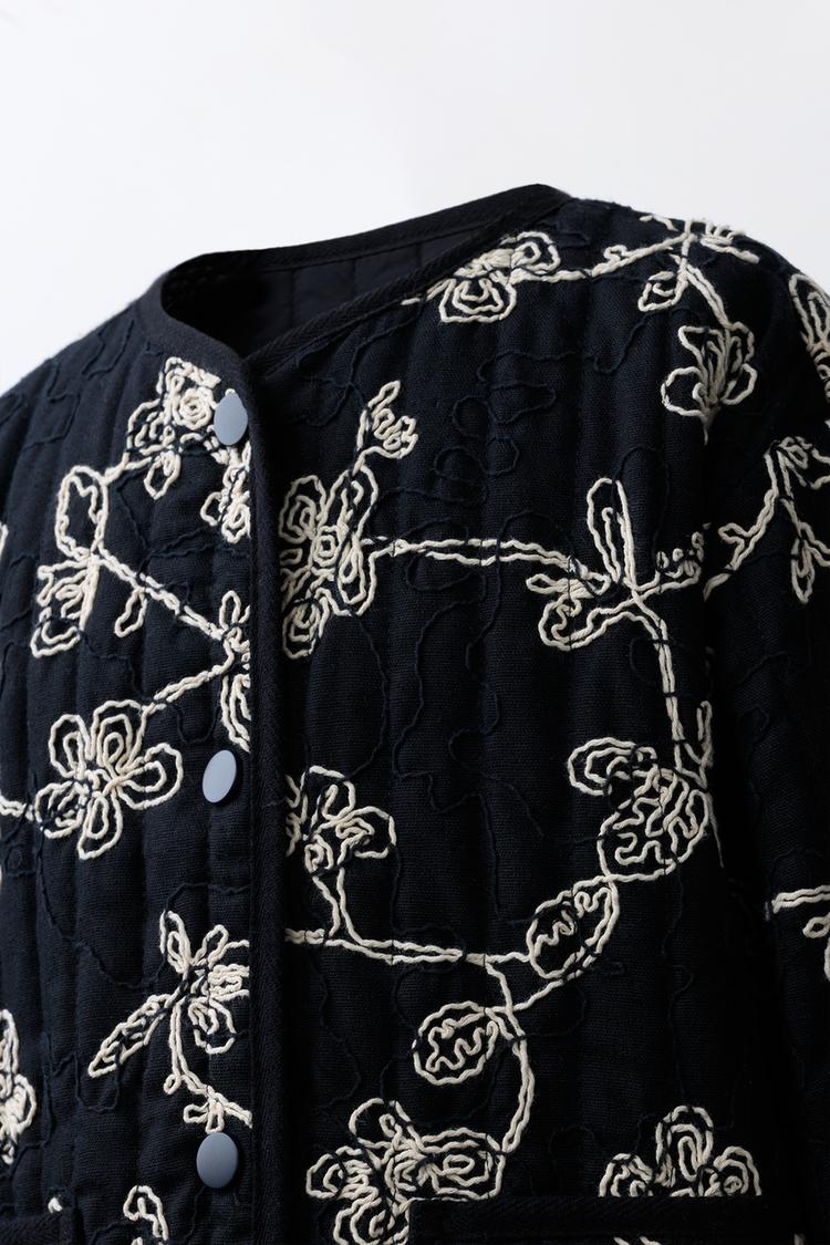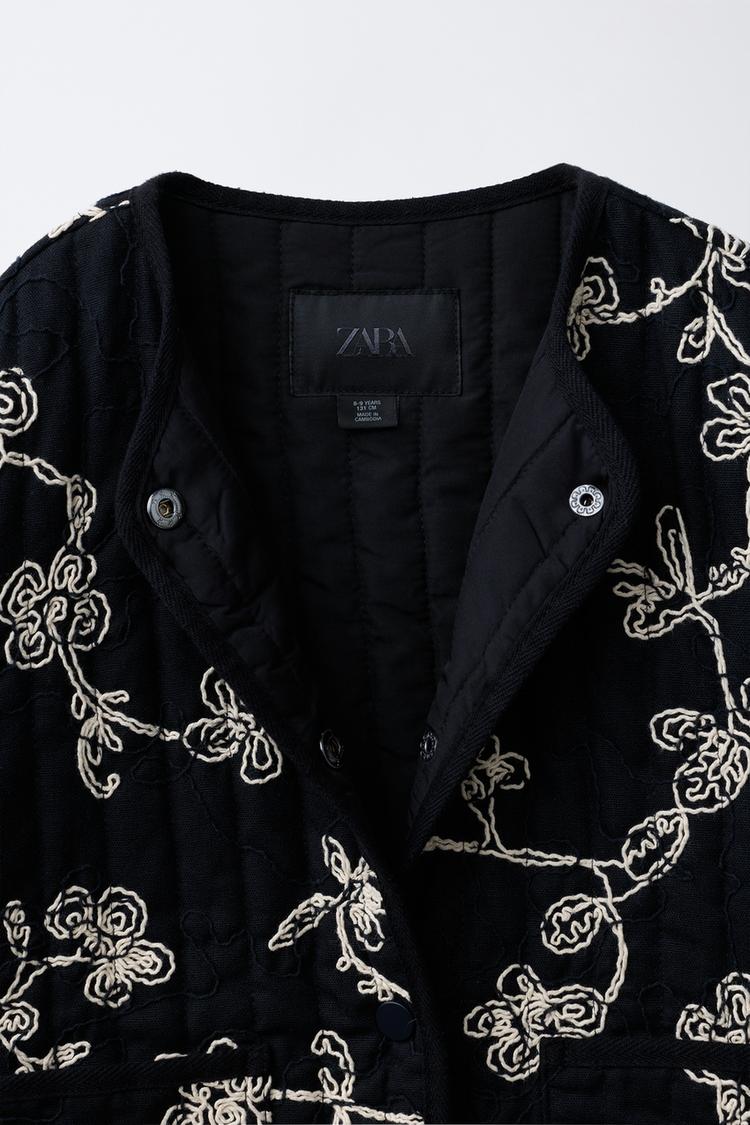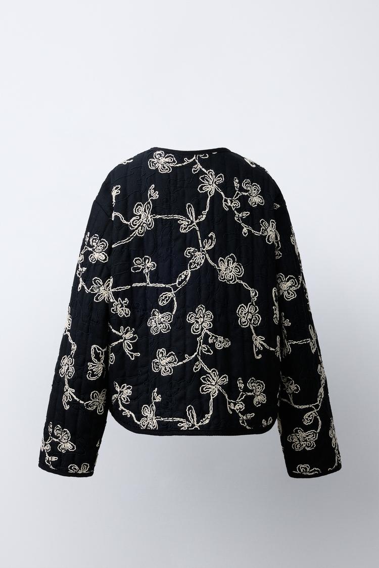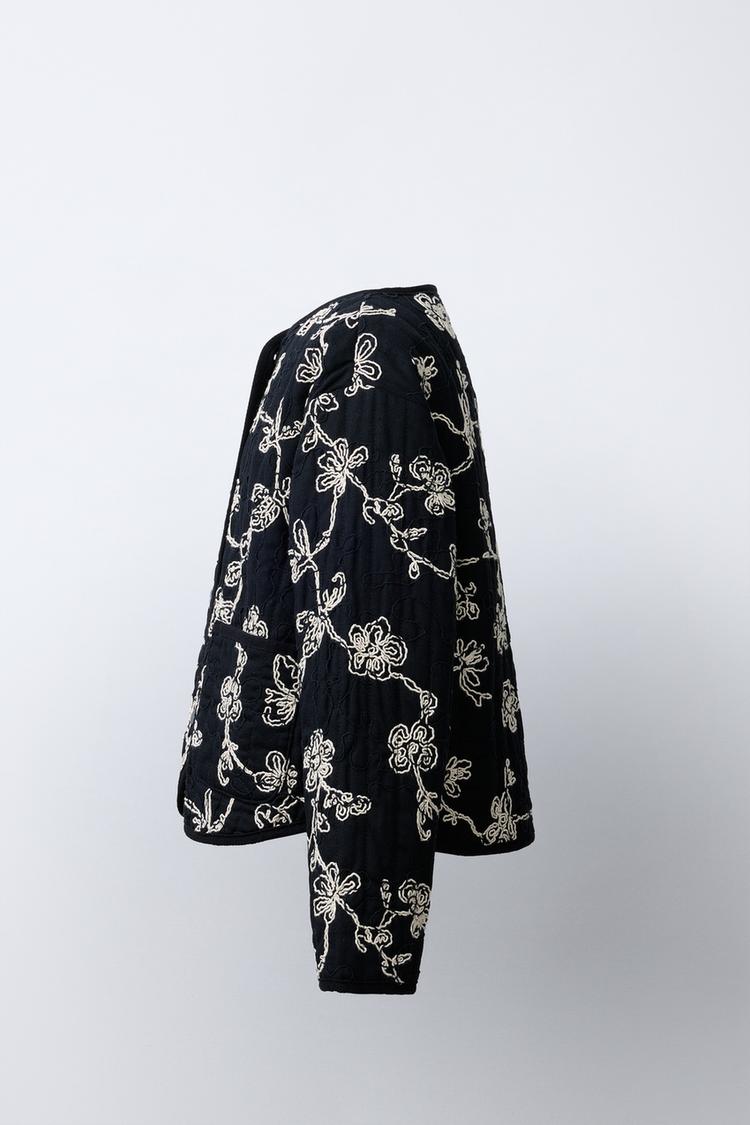 ZARA СТЕГАНАЯ КУРТКА С КОНТРАСТНОЙ ВЫШИВКОЙ, ЧЕРНЫЙ/ЭКРЮ
