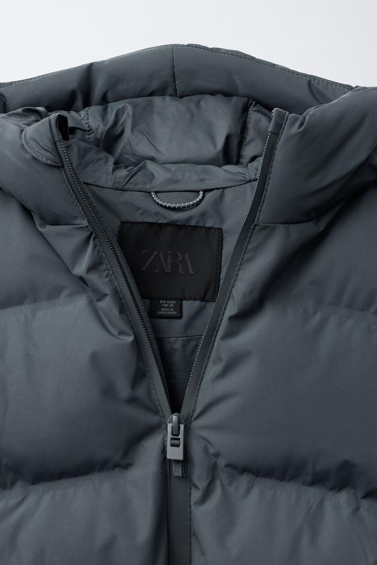 ZARA СТЕГАНАЯ КУРТКА С НАШИВКОЙ WATER REPELLENT, СЕРЫЙ