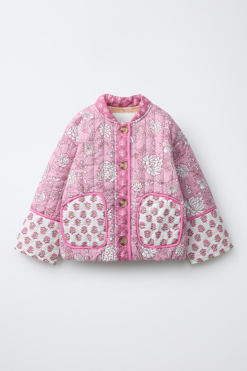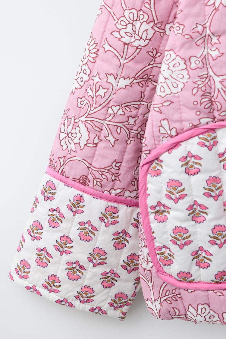 ZARA СТЕГАНАЯ КУРТКА С ЦВЕТОЧНЫМ УЗОРОМ В СТИЛЕ ПЭЧВОК, РАЗНОЦВЕТНЫЙ