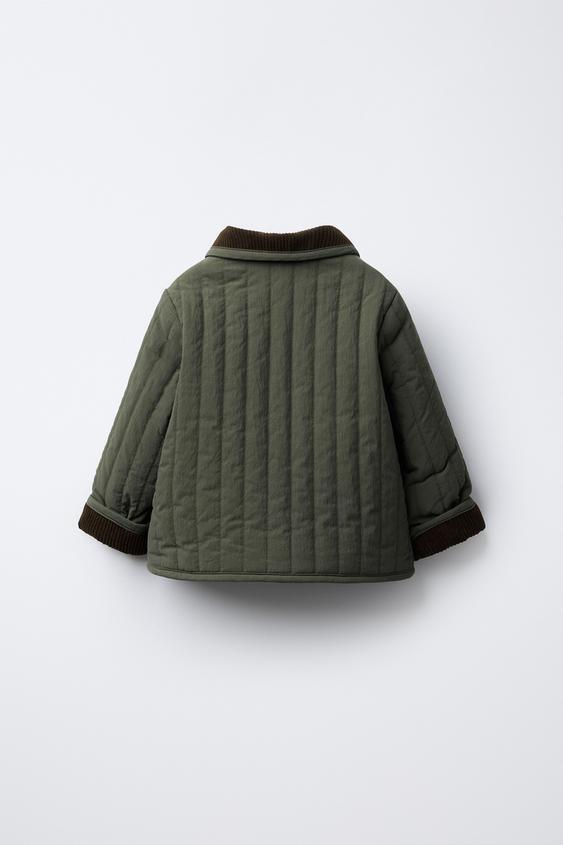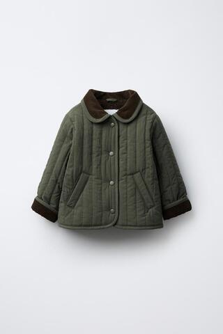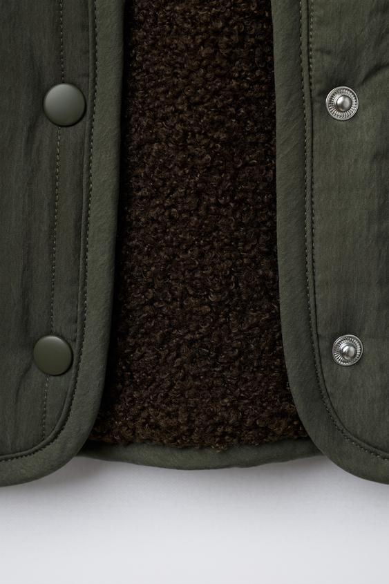 ZARA СТЕГАНАЯ КУРТКА С ВЕЛЬВЕТОВЫМ ВОРОТНИКОМ, ХАКИ
