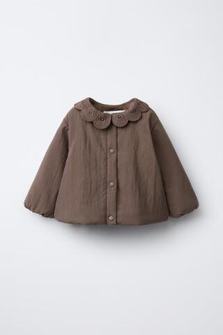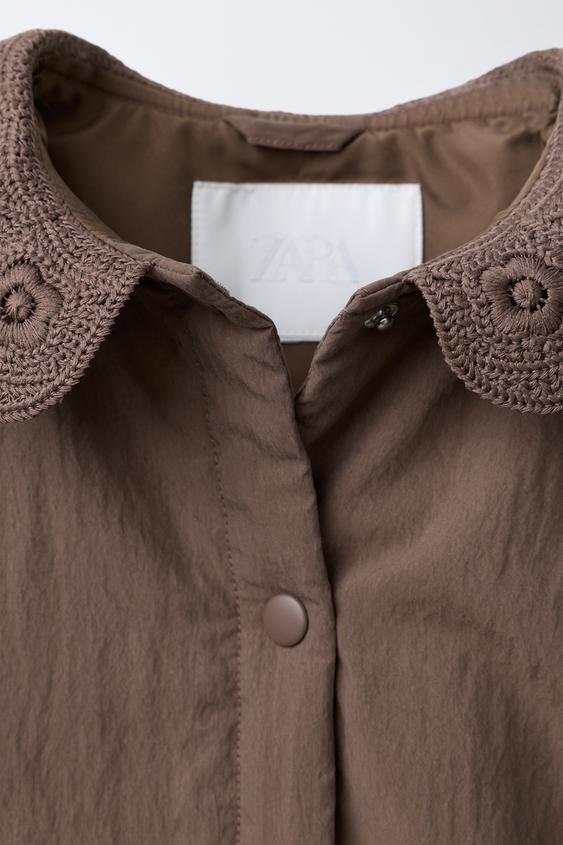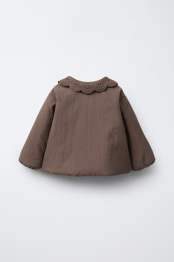 ZARA СТЕГАНАЯ КУРТКА С ВОРОТНИКОМ ИЗ КРУЖЕВА КРОШЕ, ФИОЛЕТОВЫЙ