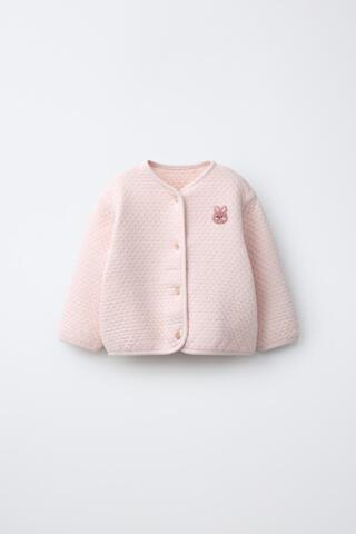 ZARA СТЕГАНАЯ КУРТКА С ВЫШИВКОЙ БУКЛЕ, РОЗОВЫЙ