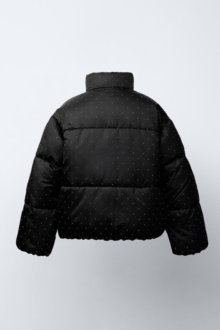 ZARA СТЕГАНАЯ КУРТКА СО СТРАЗАМИ, ЧЕРНЫЙ