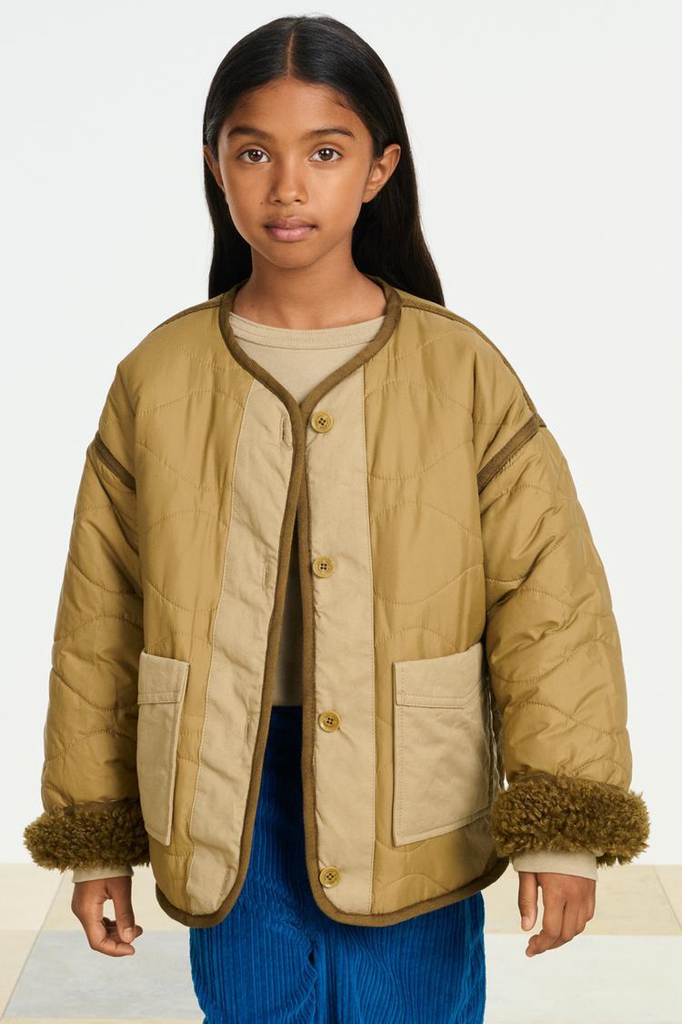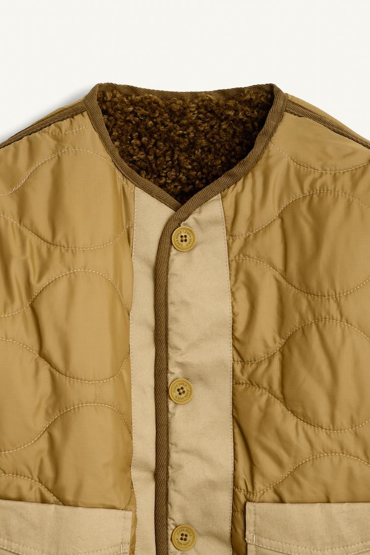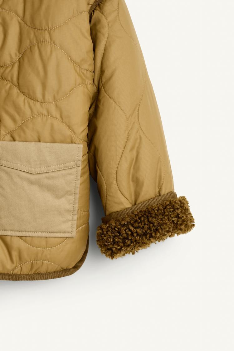 ZARA СТЕГАНАЯ КУРТКА, СВЕТЛЫЙ ХАКИ