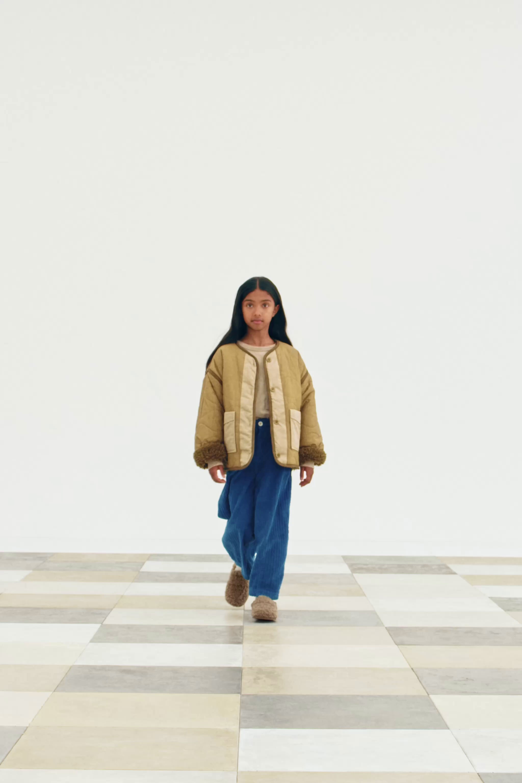 Двусторонняя стеганая куртка. С круглым вырезом и длинными рукавами. Передняя часть на пуговицах. На передней части накладные карманы. Внутренняя часть с отделкой из искусственного меха и ложная крышка на передних карманах.