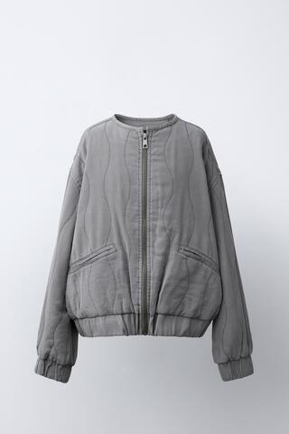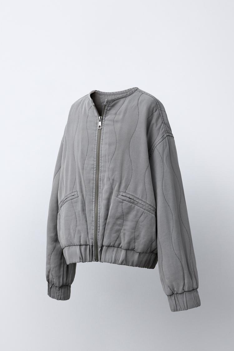 ZARA СТЕГАНАЯ КУРТКА СВОБОДНОГО КРОЯ, АНТРАЦИТОВО-СЕРЫЙ