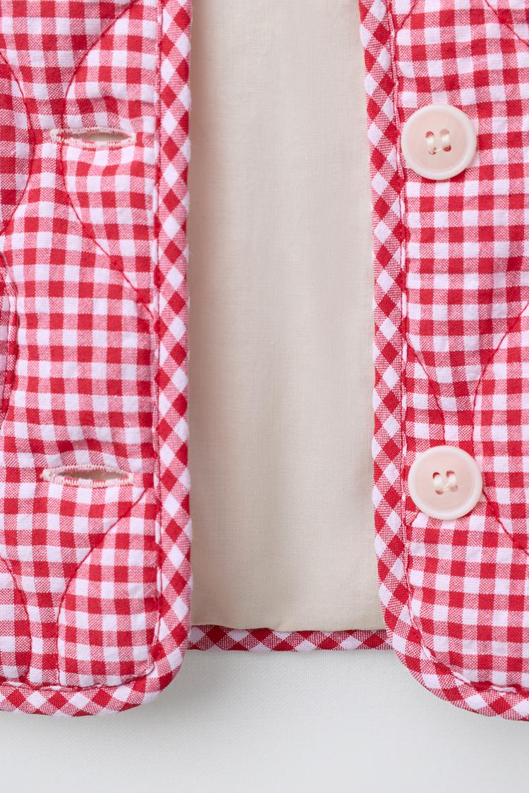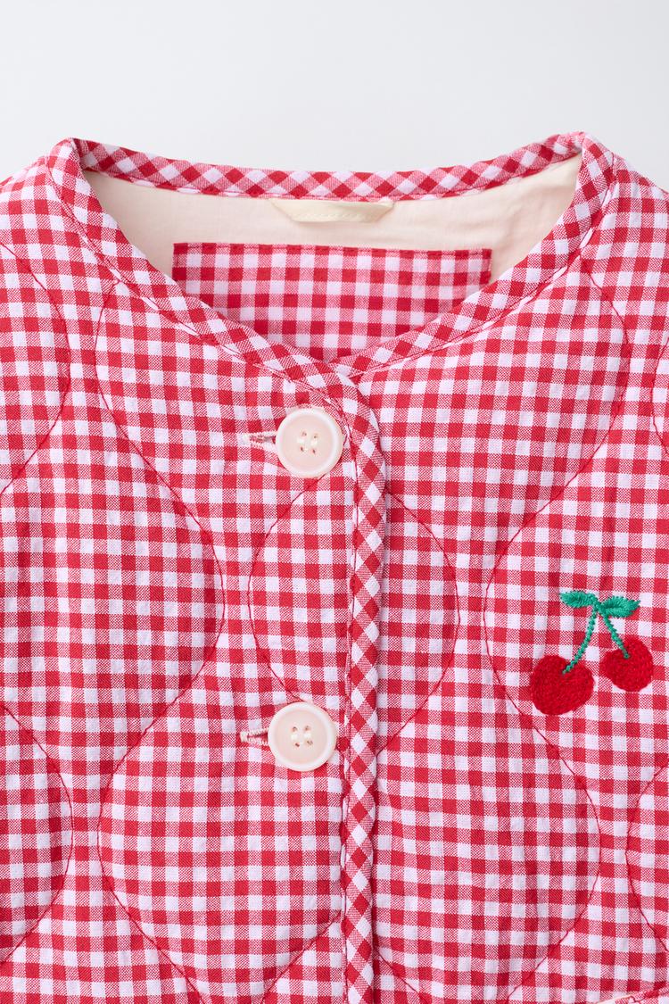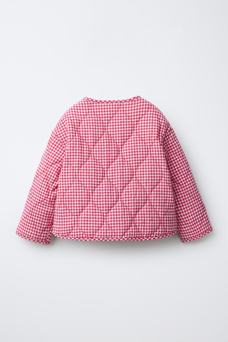 ZARA СТЕГАНАЯ КУРТКА В КЛЕТКУ ВИШИ, КРАСНЫЙ/БЕЛЫЙ