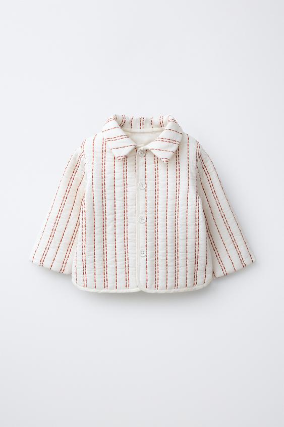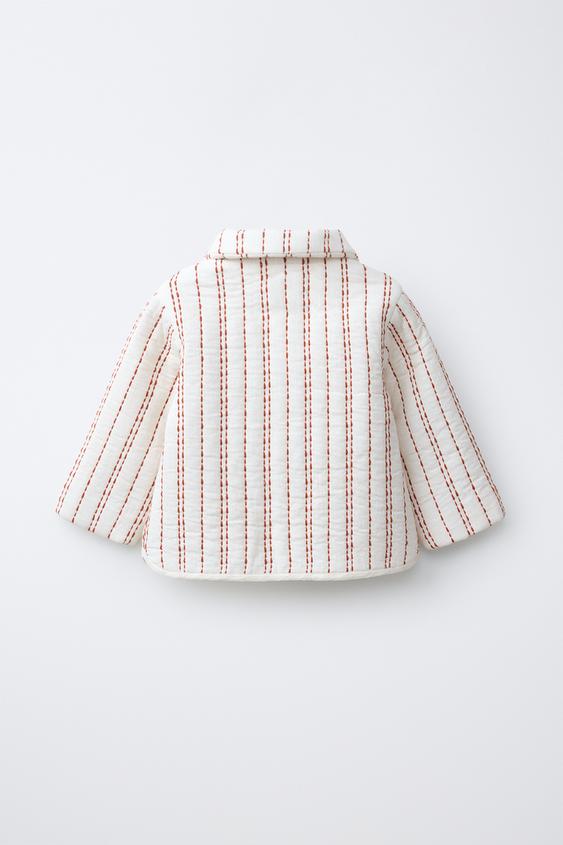 ZARA СТЕГАНАЯ КУРТКА В ПОЛОСКУ, ЭКРЮ/ГРАНАТОВЫЙ