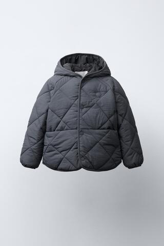 ZARA СТЕГАНАЯ КУРТКА WATER REPELLENT, АНТРАЦИТОВО-СЕРЫЙ