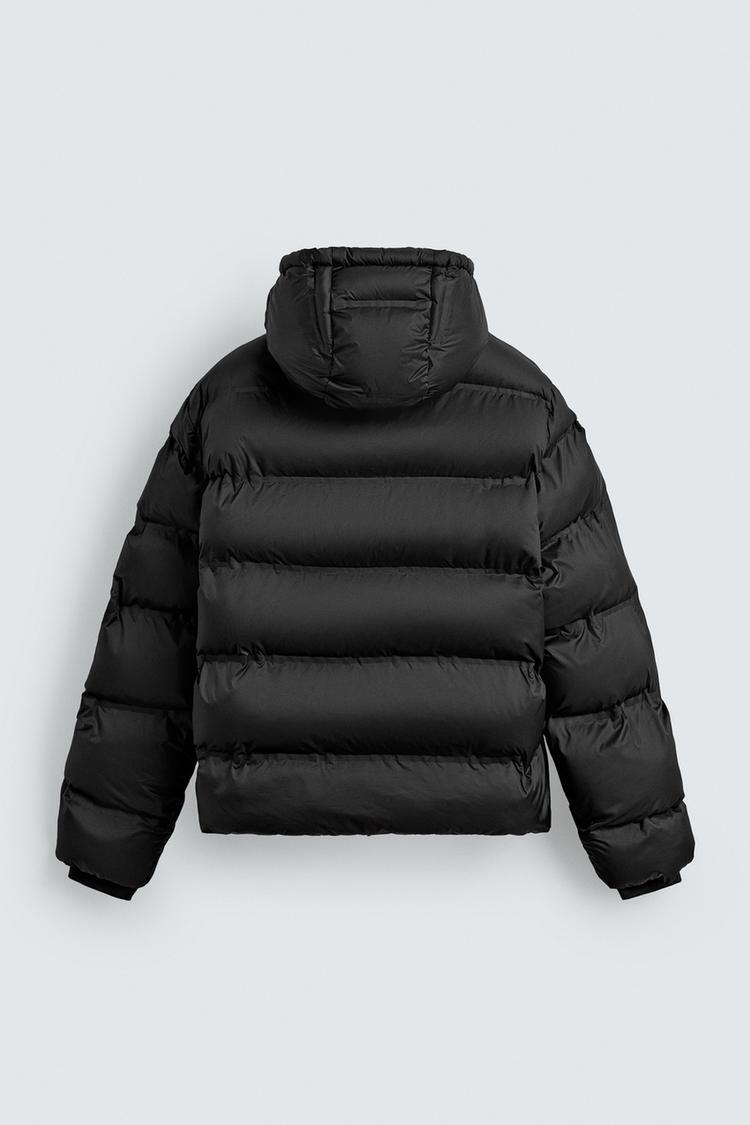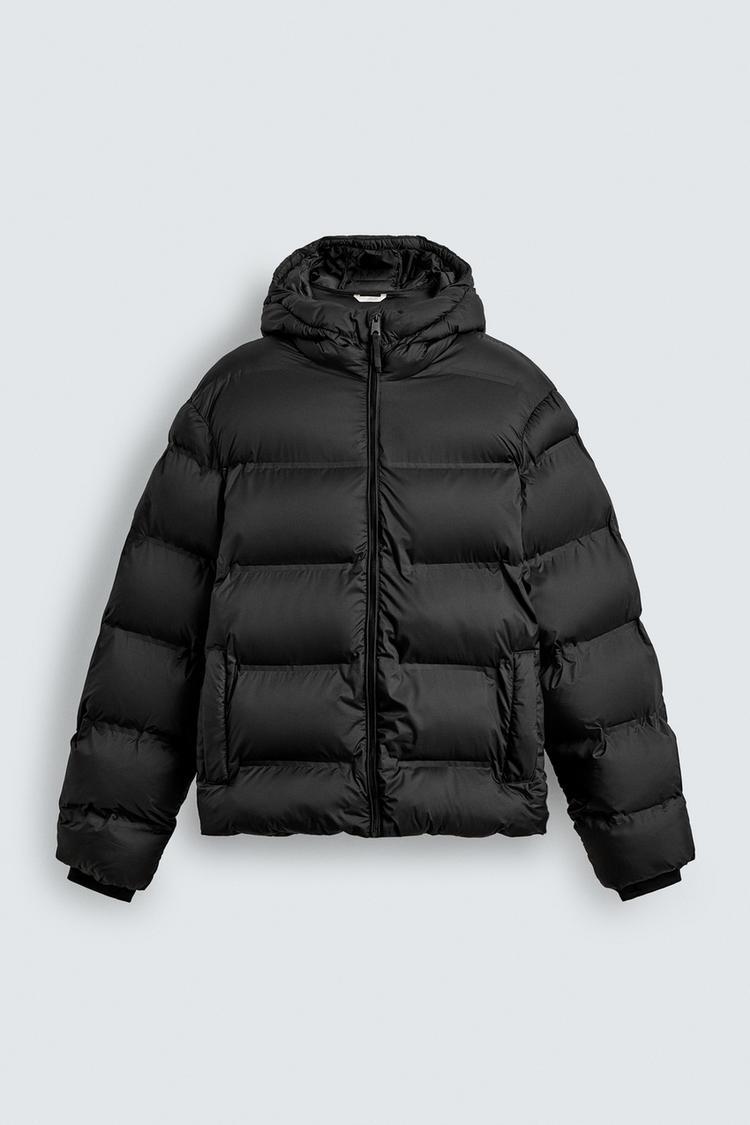 ZARA СТЕГАНАЯ КУРТКА WATER REPELLENT С КАПЮШОНОМ, ЧЕРНЫЙ