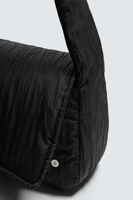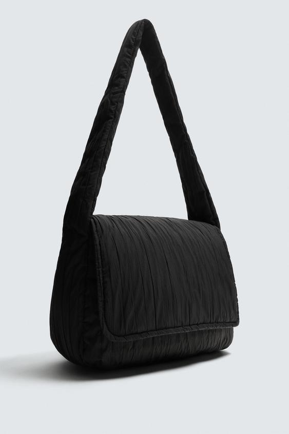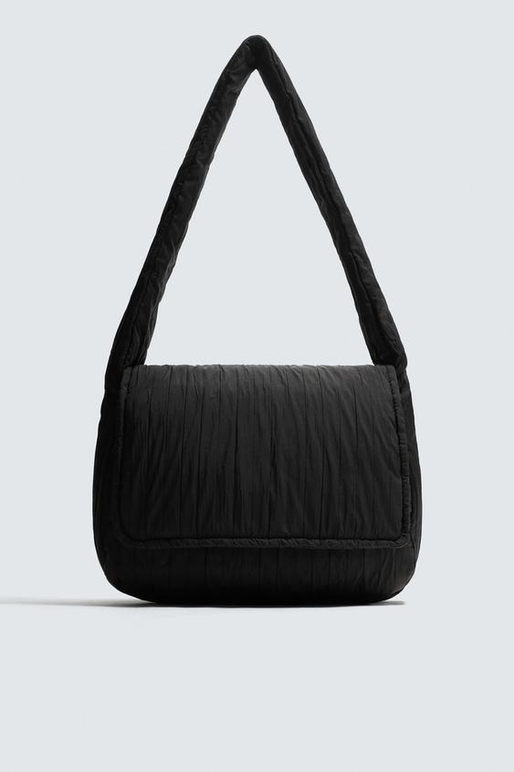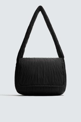 ZARA СТЕГАНАЯ НЕЙЛОНОВАЯ СУМКА ЧЕРЕЗ ПЛЕЧО, ЧЕРНЫЙ