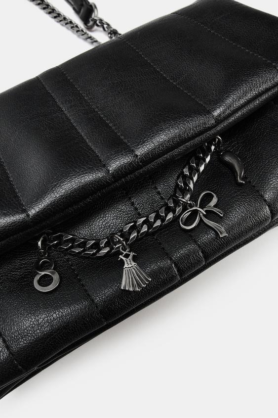 ZARA СТЕГАНАЯ СУМКА С ПЛЕЧЕВЫМ РЕМНЕМ И ПОДВЕСКАМИ, ЧЕРНЫЙ