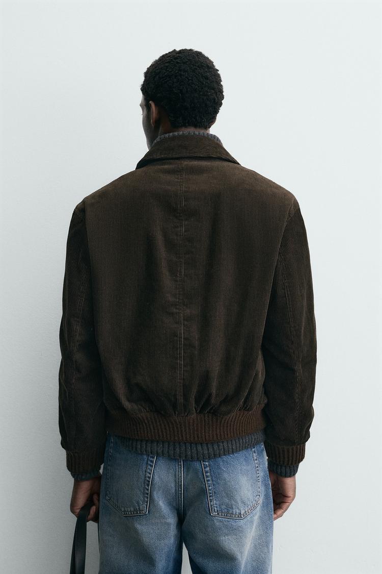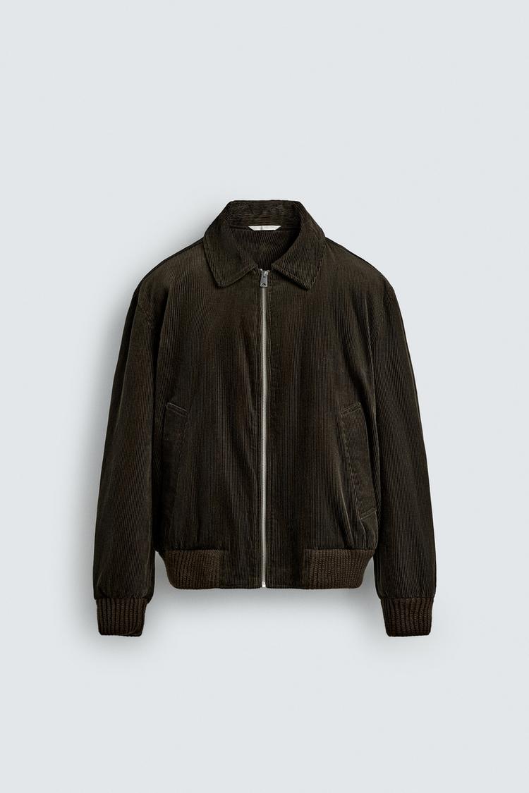 Куртка классического кроя из слегка утепленного хлопкового вельвета. Воротник с лацканами и длинные рукава. Прорезные карманы по бокам. Отделка в рубчик. Застежка-молния спереди.